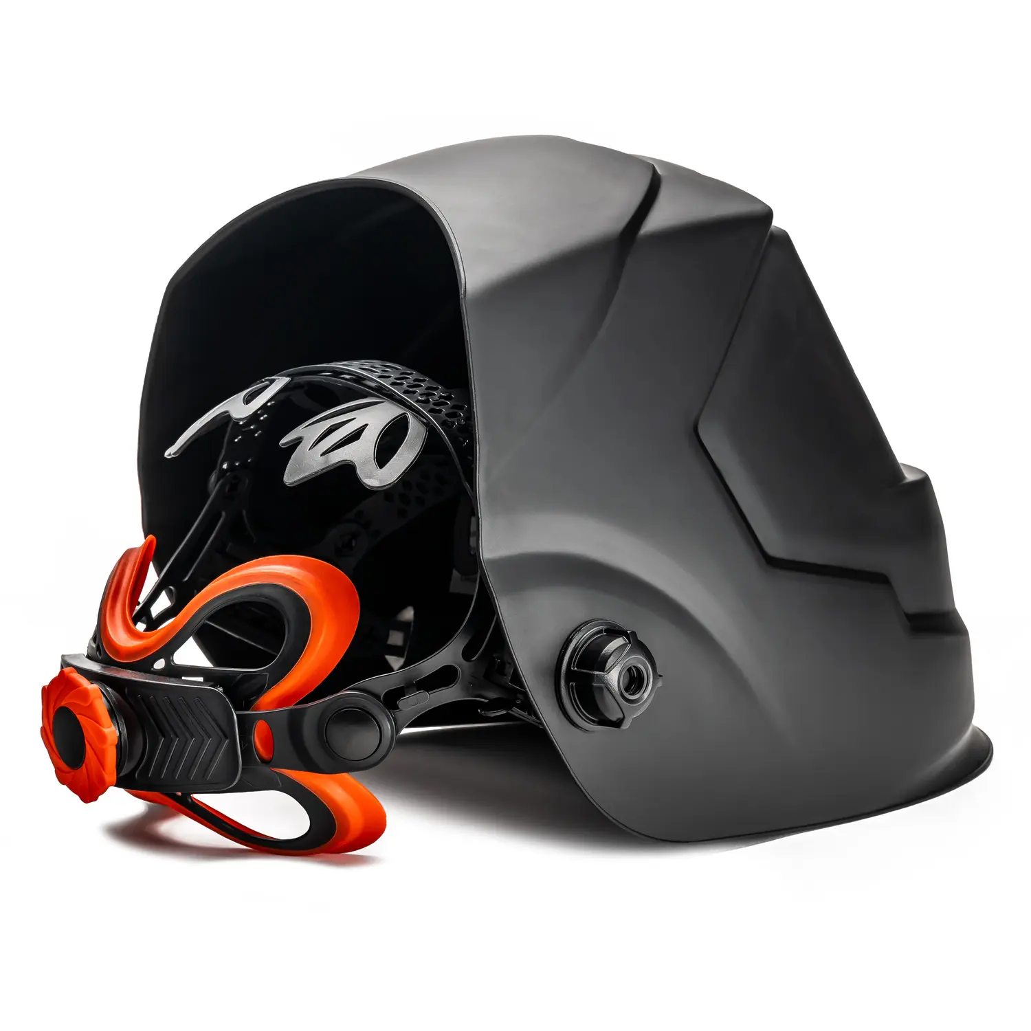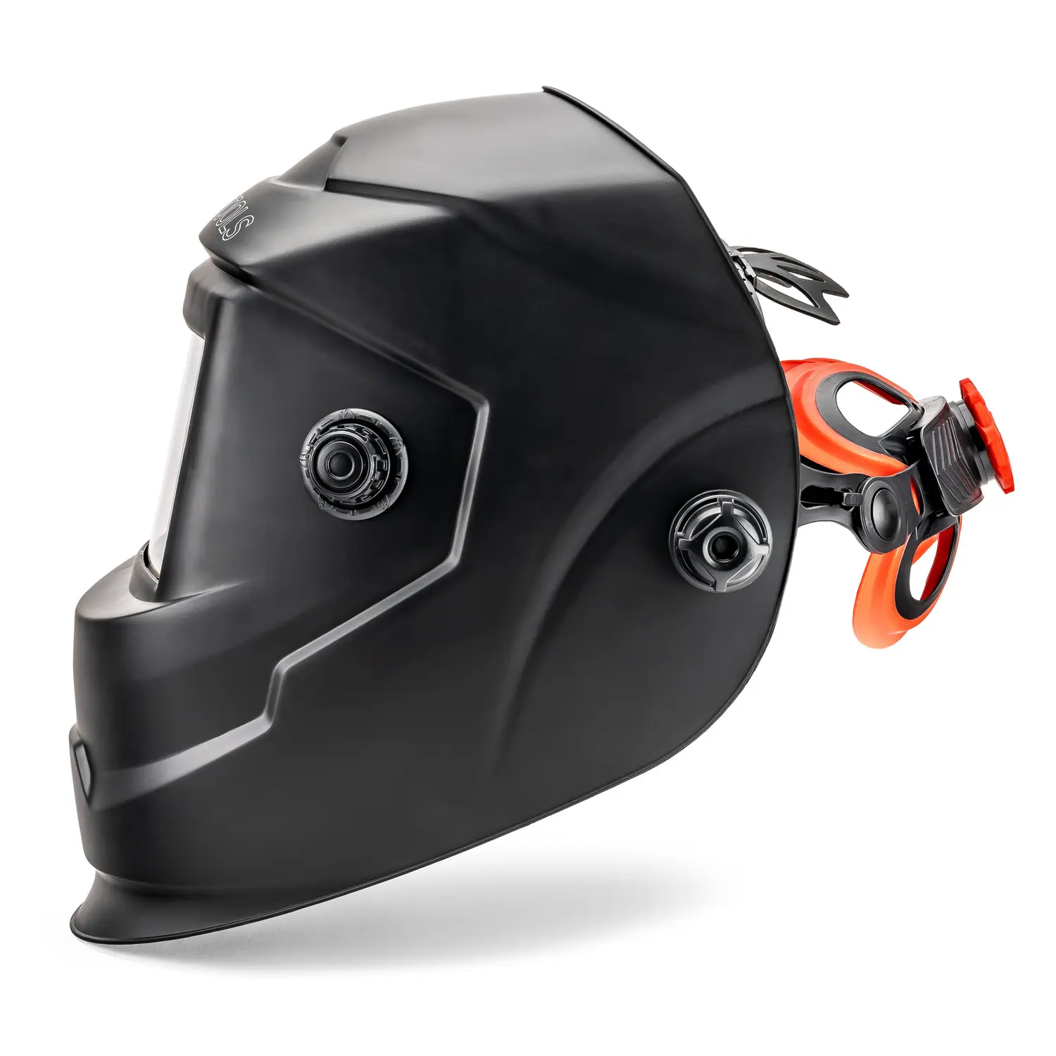 Das Tragegestell in der Maske sorgt dafür, dass die Maske optimal auf Ihre Kopfgröße eingestellt ist, damit kein lästiges Verrutschen bei der Arbeit entstehen kann. Das Tragen der Maske fühlt sich auch angenehm an, da das Tragegestell zusätzlich gepolstert und durch die Bedienknöpfe volleinstellbar ist, nach Größe des Kopfes und nach dem Sichtwinkel.